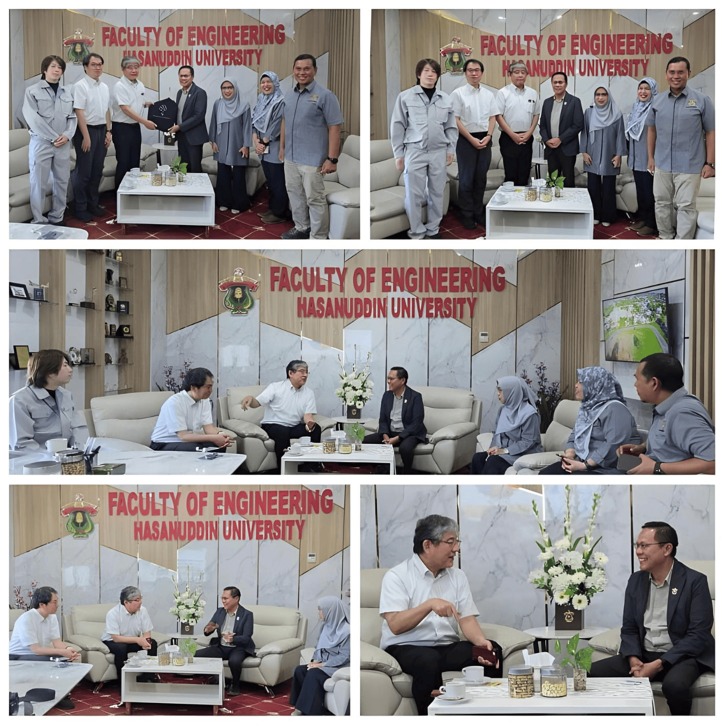 The Faculty of Engineering at Hasanuddin University recently hosted a delegation of scholars from Kyushu University, Japan. The delegation included Professor Hirofumi Nakayama, Dr. Yasuhiro Sugisaki, and a student from the Department of Urban and Environmental Engineering within the Faculty of Engineering. Prof. Dr. Eng. Ir. Muhammad Isran Ramli, Dean of the Faculty of Technology (FT-UH), extended a warm welcome to the visitors in the Dean's Office.