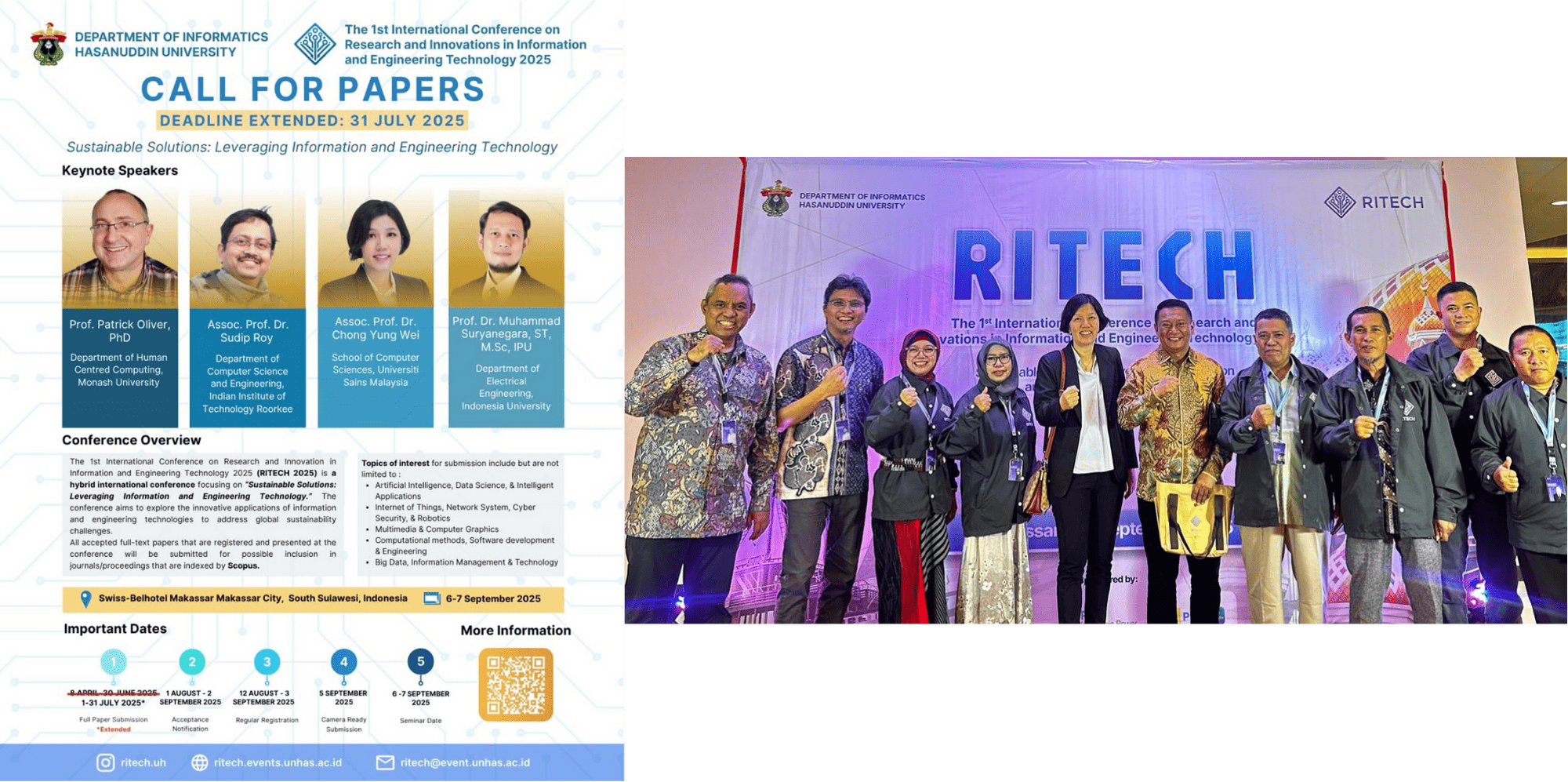 The Faculty of Engineering at Universitas Hasanuddin successfully organized the inaugural International Conference on Research and Innovations in Informatics and Engineering Technology (RITECH 2025) on September 6–7, 2025. Conducted in a hybrid format from Swiss-Belhotel Makassar, South Sulawesi, Indonesia, the conference convened esteemed academics, researchers, and practitioners from across the globe.